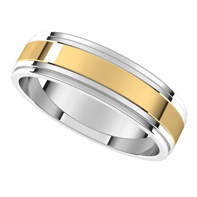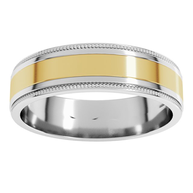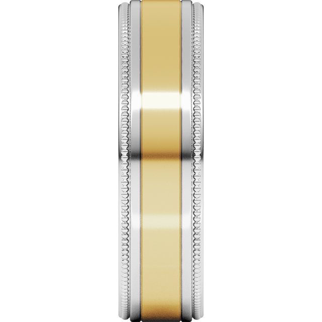 14K White/Yellow 6 mm Milgrain Flat Inlay Band Size 9
