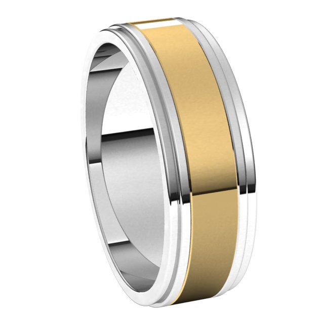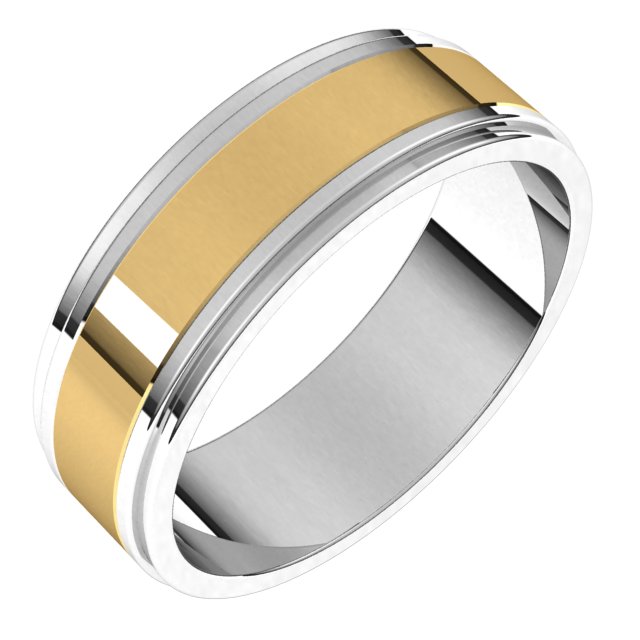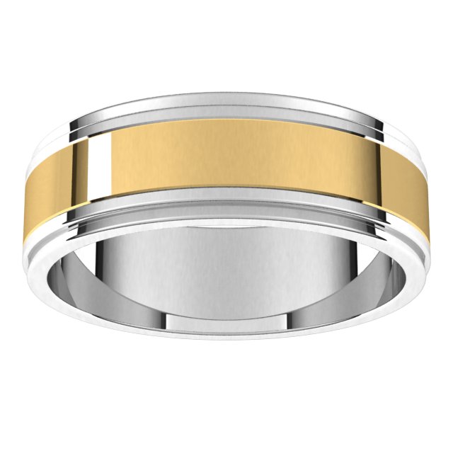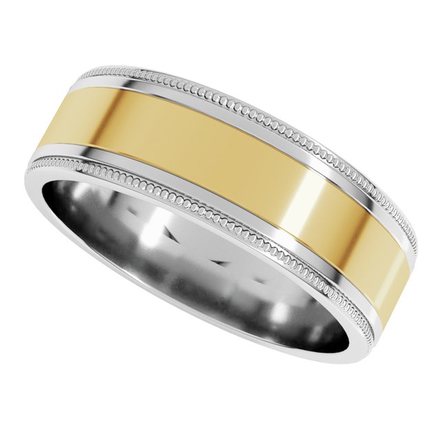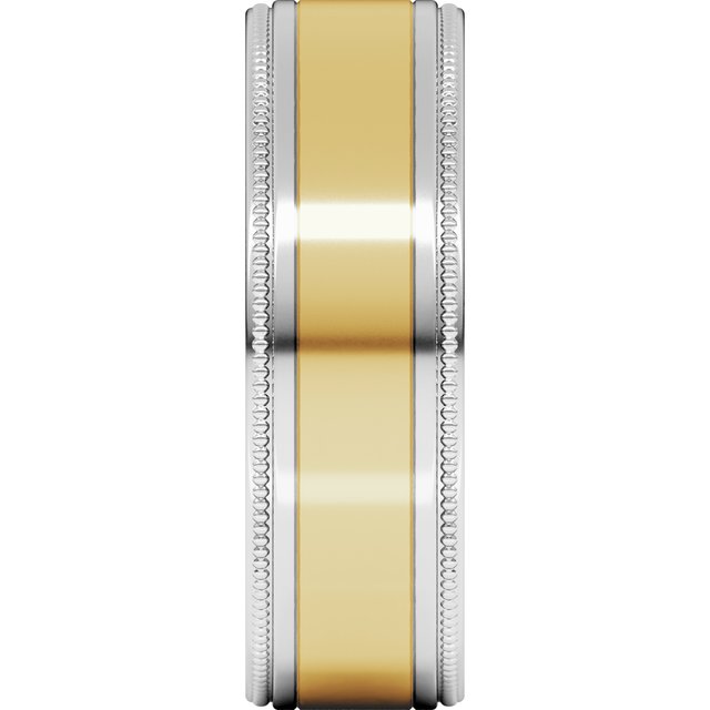 14K White/Yellow 7 mm Milgrain Flat Inlay Band Size 10