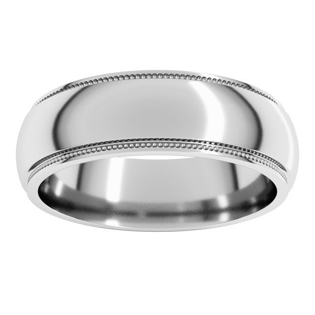 14K X1 White 6 mm Milgrain Half Round Edge Band Size 11
