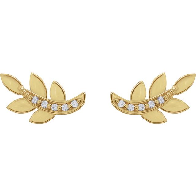 14K Yellow .07 CTW Natural Diamond Leaf Earrings