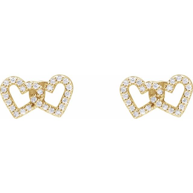 14K Yellow 1/5 CTW Natural Diamond Interlocking Heart Earrings