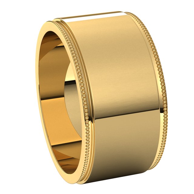 14K Yellow 10 mm Milgrain Flat with Edge Band Size 10