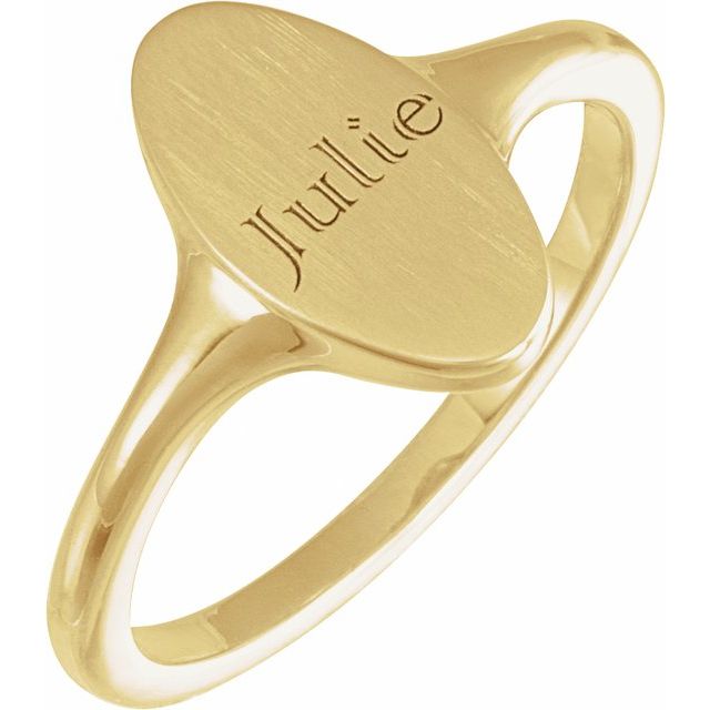 14K Yellow 13x7 mm Oval Brushed Top Signet Ring