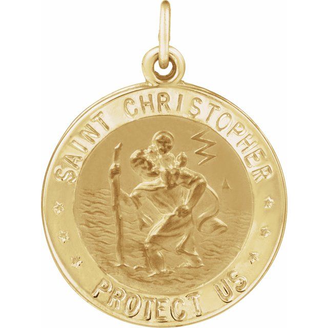 14K Yellow 18 mm Round St. Christopher Medal U.S. Navy Medal
