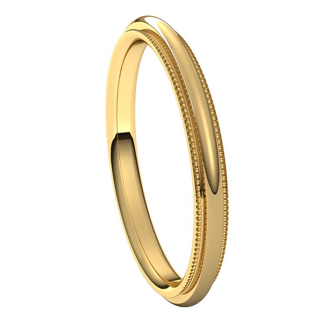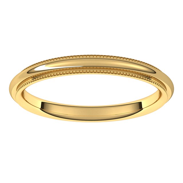14K Yellow 2 mm Milgrain Half Round Comfort Fit Edge Band Size 11