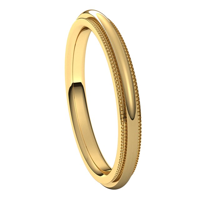 14k Yellow 2.5 Mm Milgrain Stepped-edge Comfort-fit Half Round Band Size 7