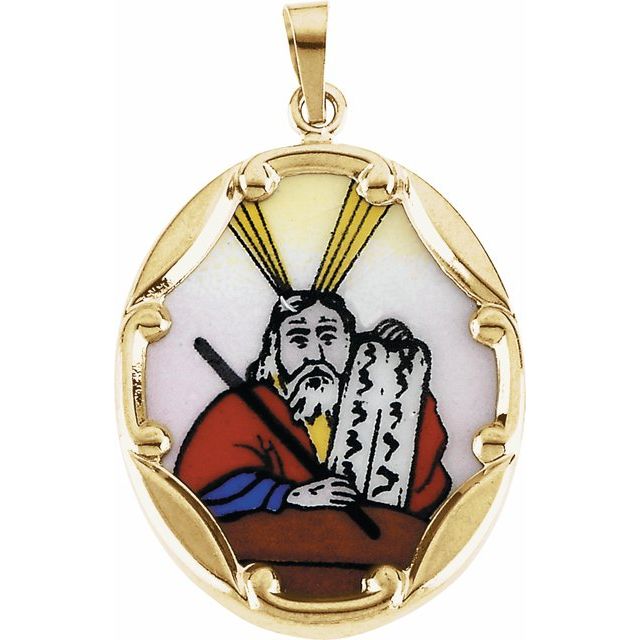 14k Yellow 25x19.5 Mm Moses Hand-painted Porcelain Medal