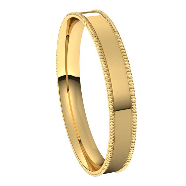 14K Yellow 3 mm Milgrain Flat Comfort Fit Band Size 6