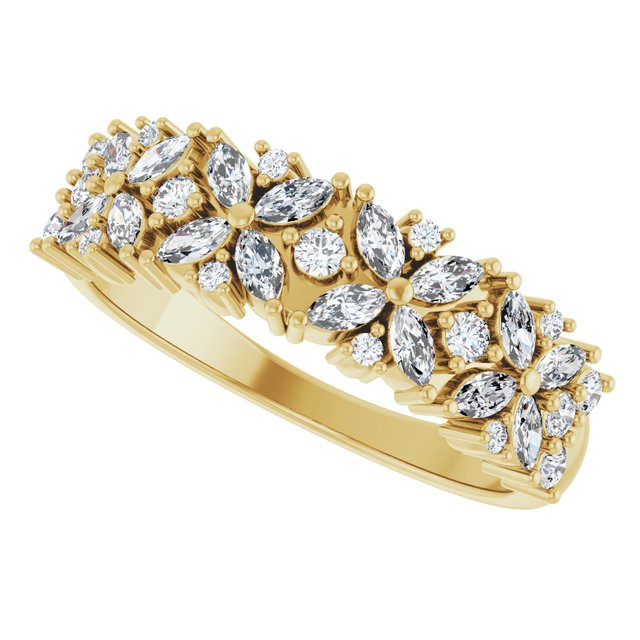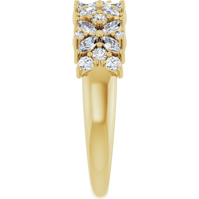14K Yellow 5/8 CTW Natural Diamond Floral Anniversary Band