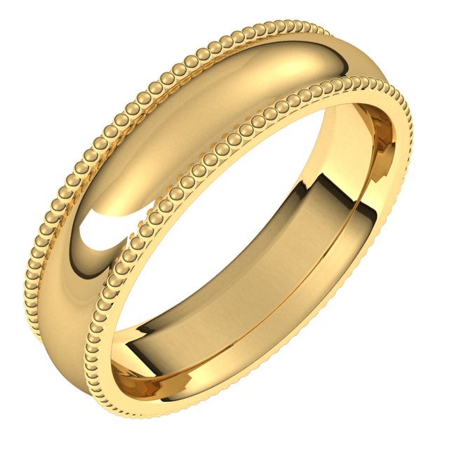 14K Yellow 5 mm Beaded Comfort-Fit Band Size 8.5