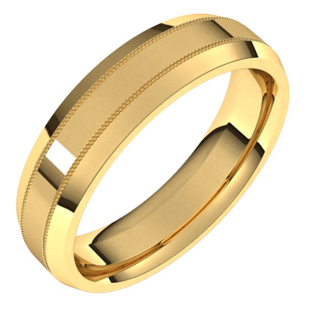 14K Yellow 5 mm Milgrain Beveled Edge Band Size 10
