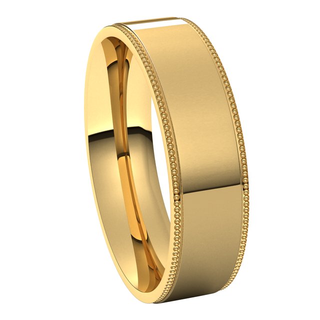 14K Yellow 5 mm Milgrain Flat Comfort Fit Edge Band Size 10.5
