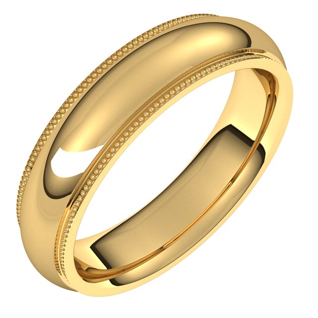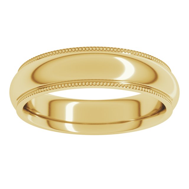 14K Yellow 5 mm Milgrain Half Round Comfort Fit Edge Band Size 10