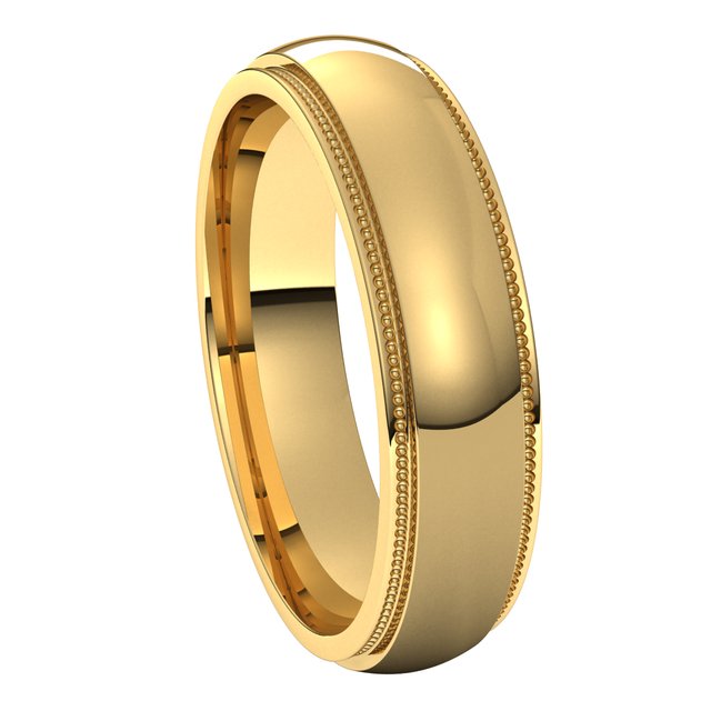 14K Yellow 5 mm Milgrain Half Round Edge Band Size 7
