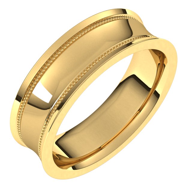 14K Yellow 6 mm Milgrain Concave with Edge Band Size 10