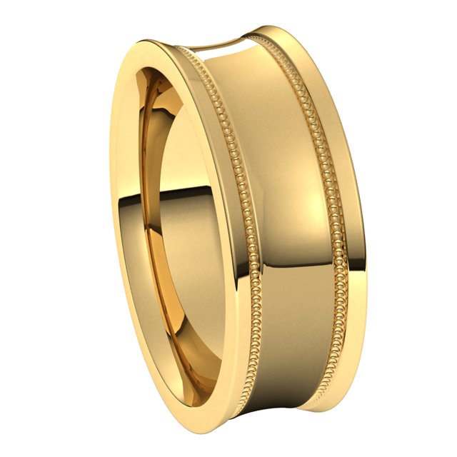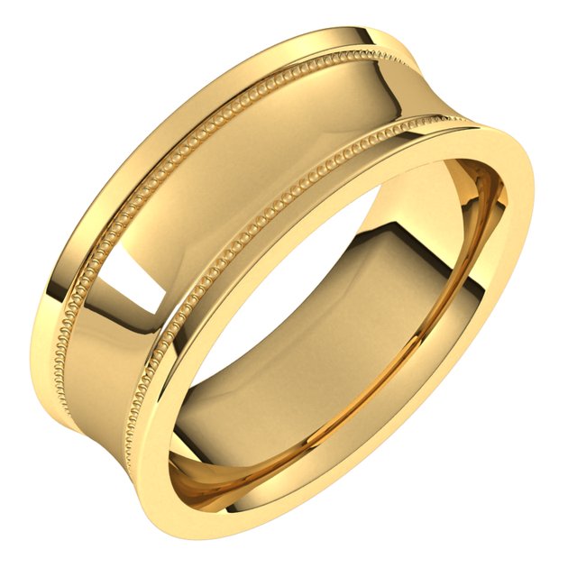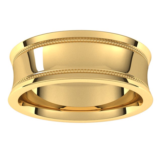 14K Yellow 7 mm Milgrain Concave with Edge Band Size 9.5