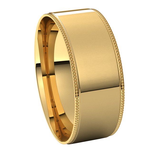 14K Yellow 7 mm Milgrain Flat Comfort Fit Edge Band Size 7.5