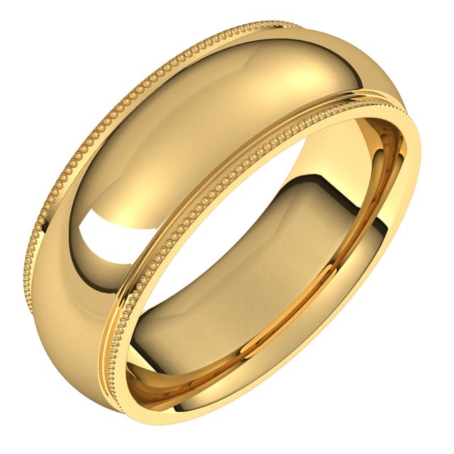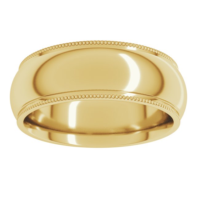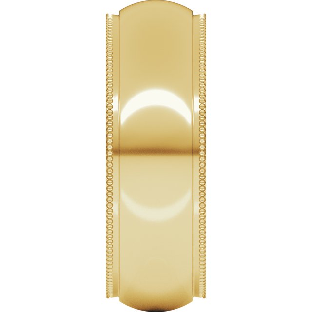 14K Yellow 7 mm Milgrain Half Round Comfort Fit Edge Band Size 8.5