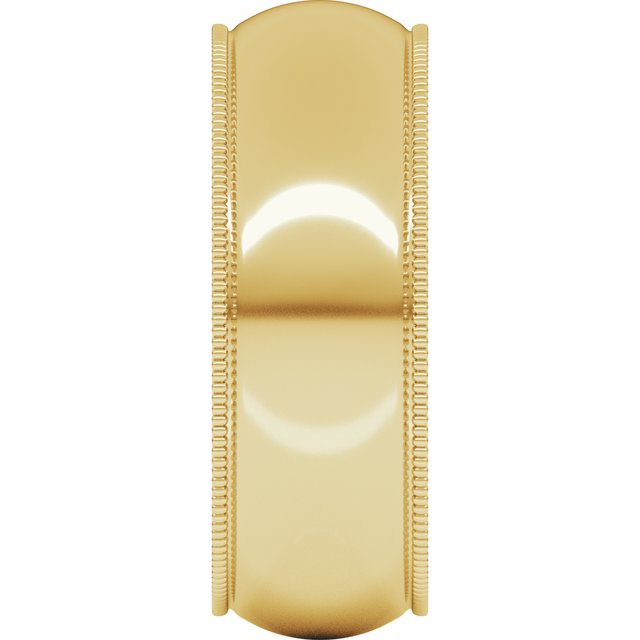 14k Yellow 7 Mm Milgrain Half Round Comfort Fit Light Band Size 8.5