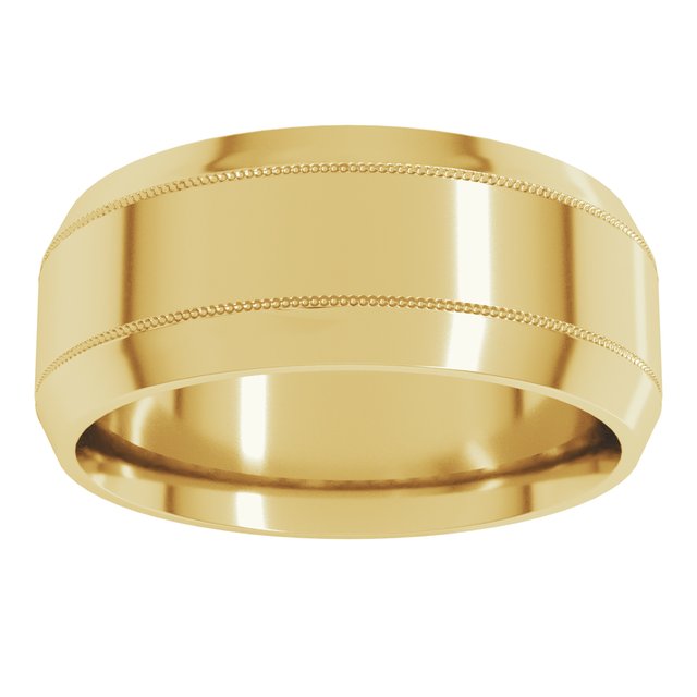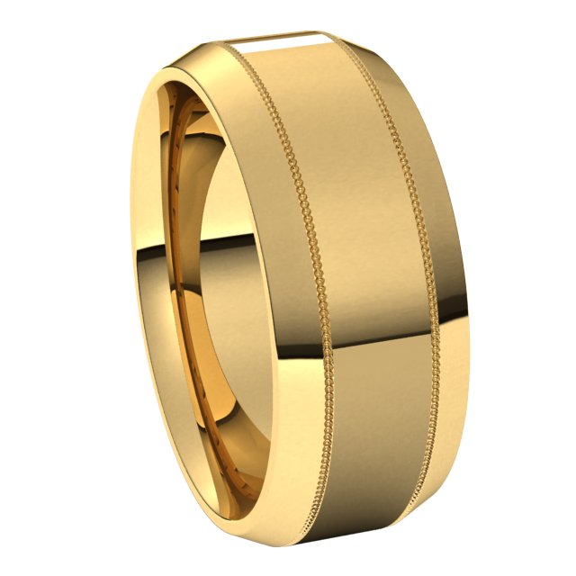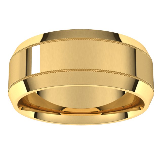 14K Yellow 8 mm Milgrain Beveled Edge Band Size 10.5