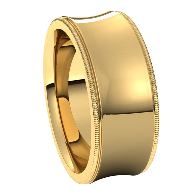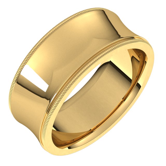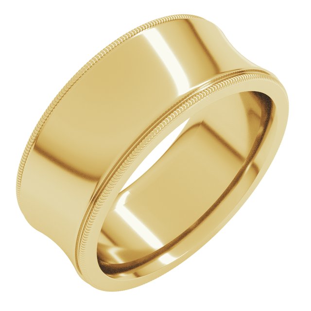 14K Yellow 8 mm Milgrain Concave Comfort-Fit Band Size 6
