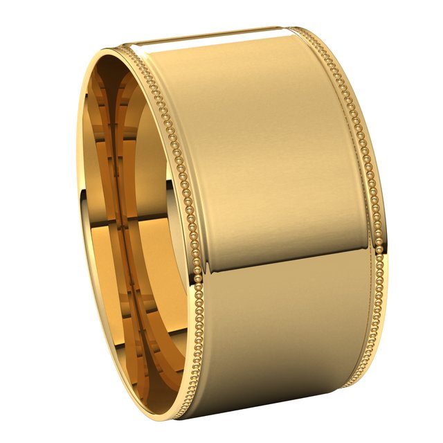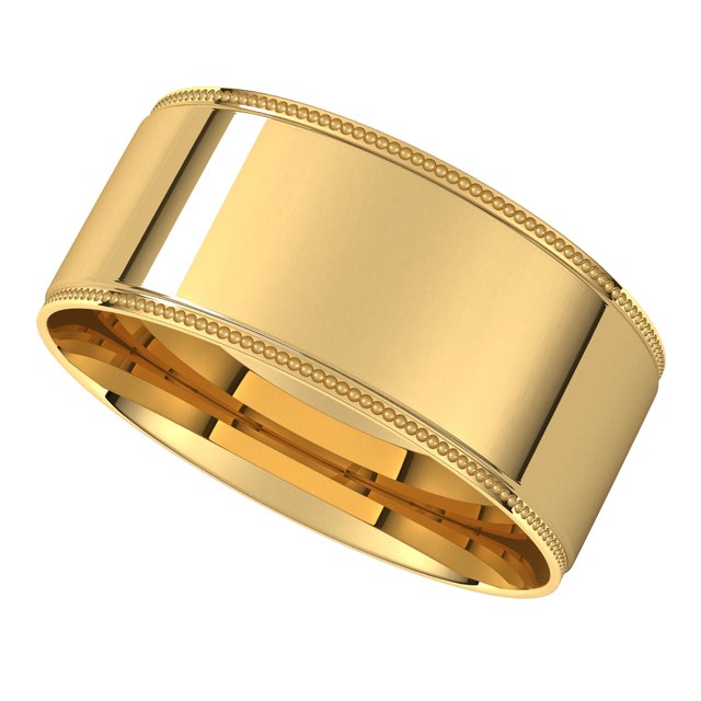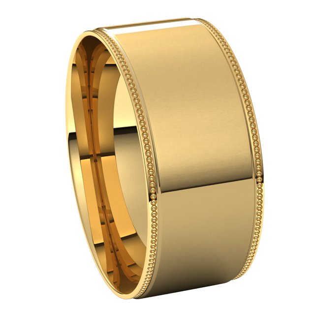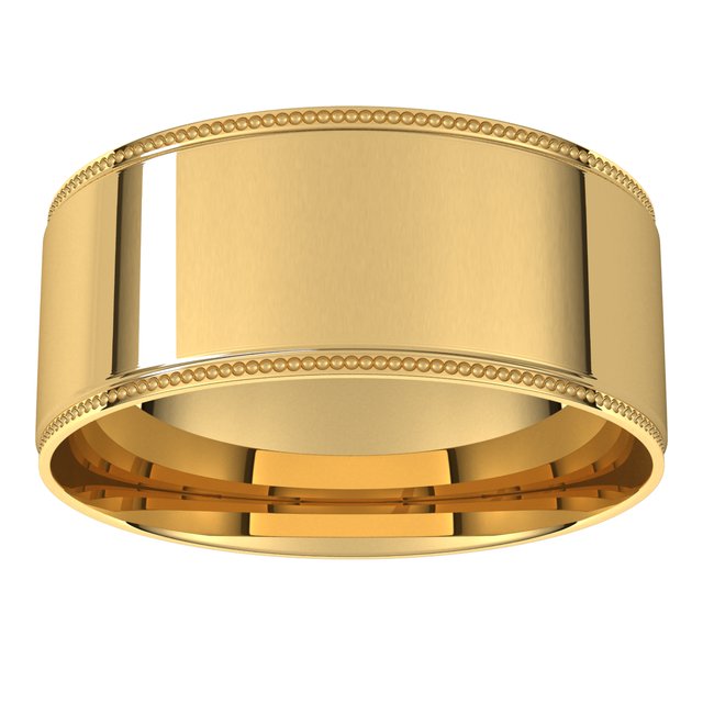 14K Yellow 8 mm Milgrain Flat Comfort Fit Edge Band Size 10