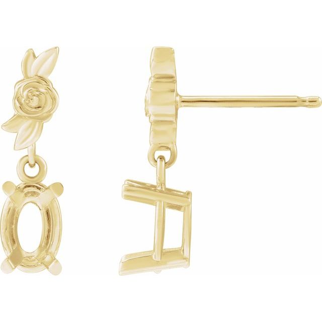 14K Yellow 8x6 mm Oval Left Floral Earring Mounting