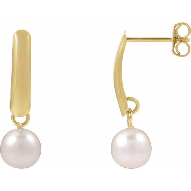 14K Yellow Cultured White Freshwater Pearl Earrings