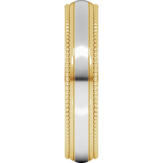14K Yellow/White 5 mm Half Round Milgrain Comfort-Fit Band