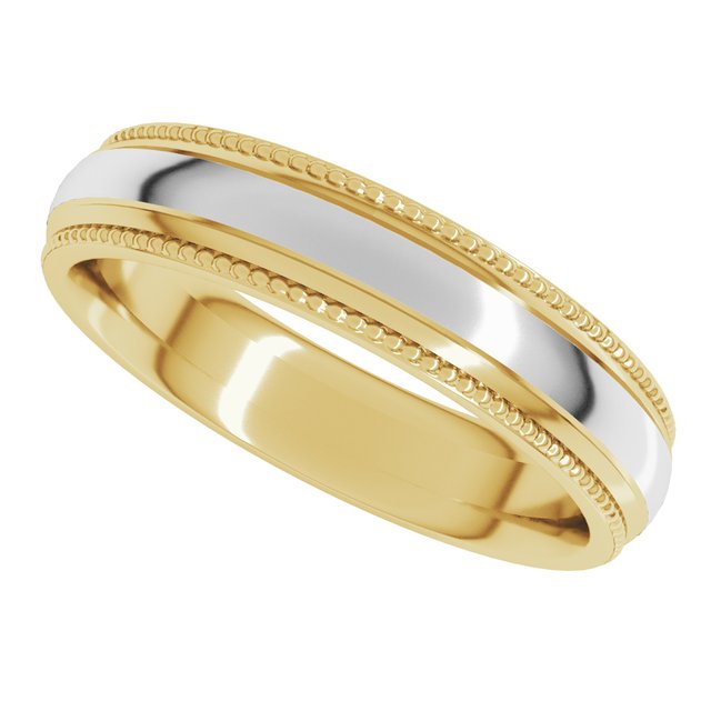 14K Yellow/White 5 mm Half Round Milgrain Comfort-Fit Band