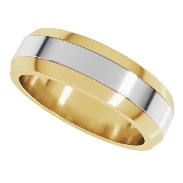 14K Yellow/White 6 mm Beveled Edge Band Size 10