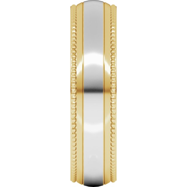 14K Yellow/White 6 mm Half Round Milgrain Comfort-Fit Band