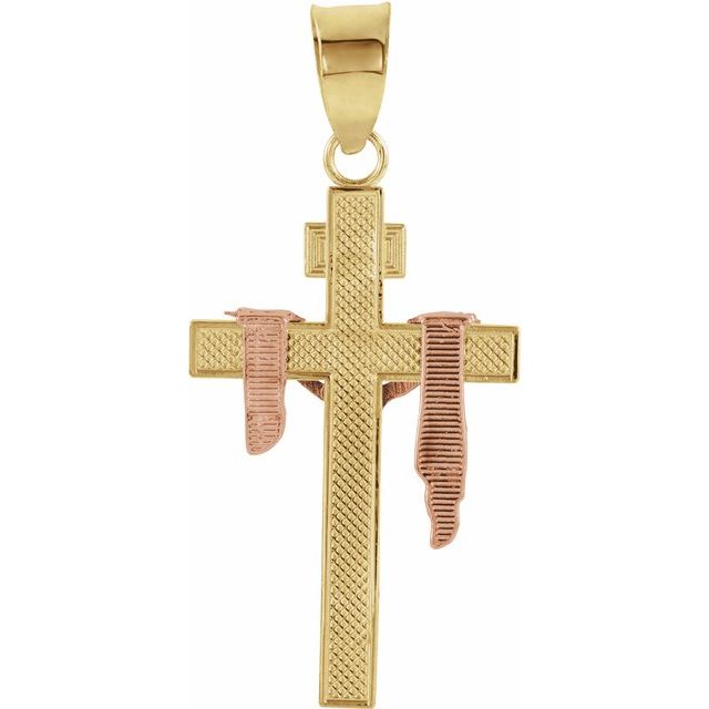 14K Yellow/White/Rose 29x18.5 mm Crucifix Pendant