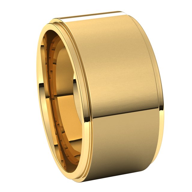 18k Yellow 10 Mm Stepped-edge Comfort-fit Flat Band Size 11
