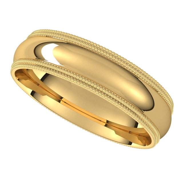 18k Yellow 5 Mm Double Milgrain Half Round Comfort Fit Band Size 10