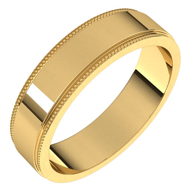 18K Yellow 5 mm Milgrain Flat with Edge Band Size 10