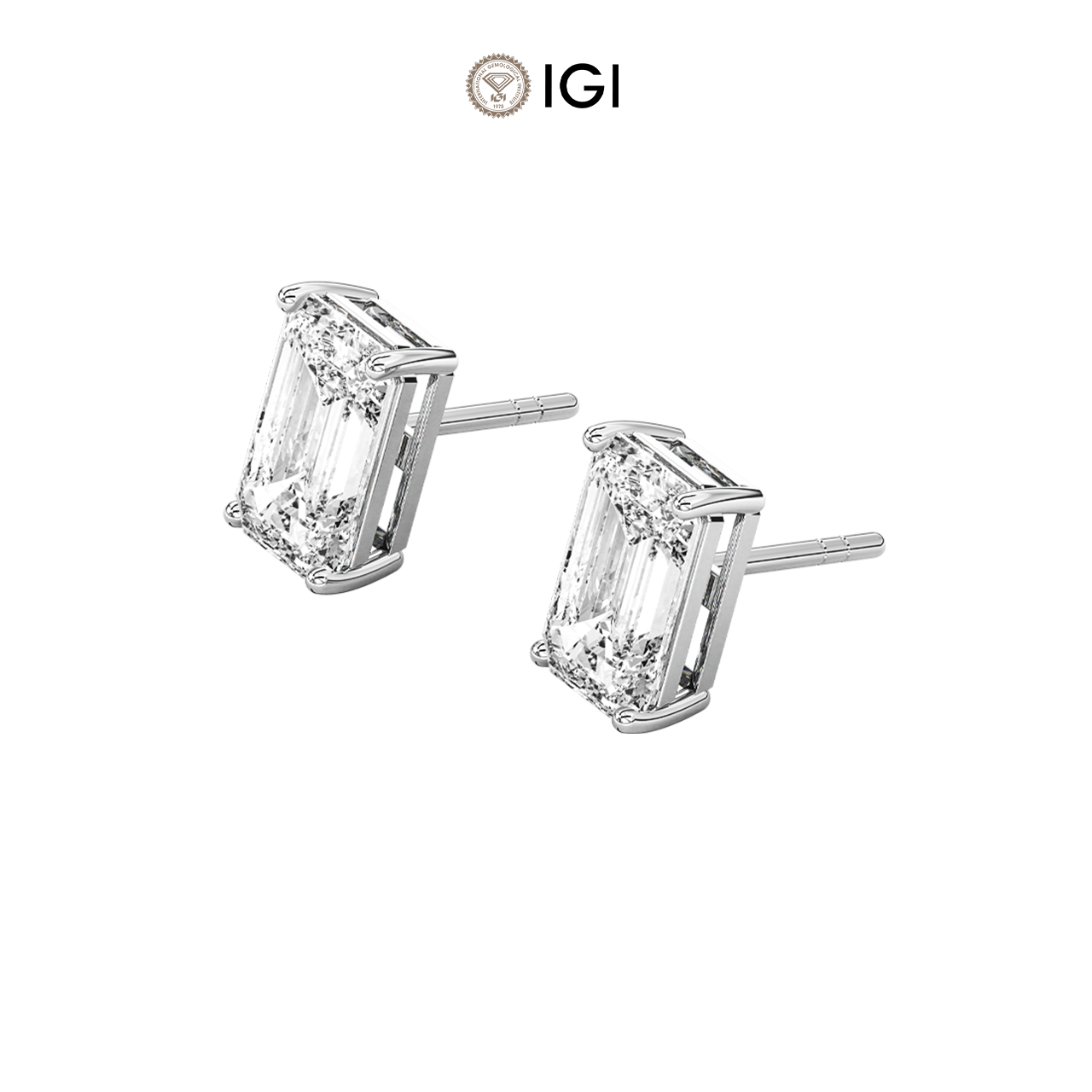 Elevate your elegance with these stunning Emerald -shaped IGI Certified lab-grown diamond stud earrings. Crafted in 18K gold, these earrings feature a total diamond weight of 2 carats, offering a sustainable and radiant sparkle. The emerald diamonds are carefully set to enhance their brilliance, creating a sophisticated and timeless look. With secure push backings, these earrings provide a comfortable and effortless wear, perfect for both everyday chic and special occasions.