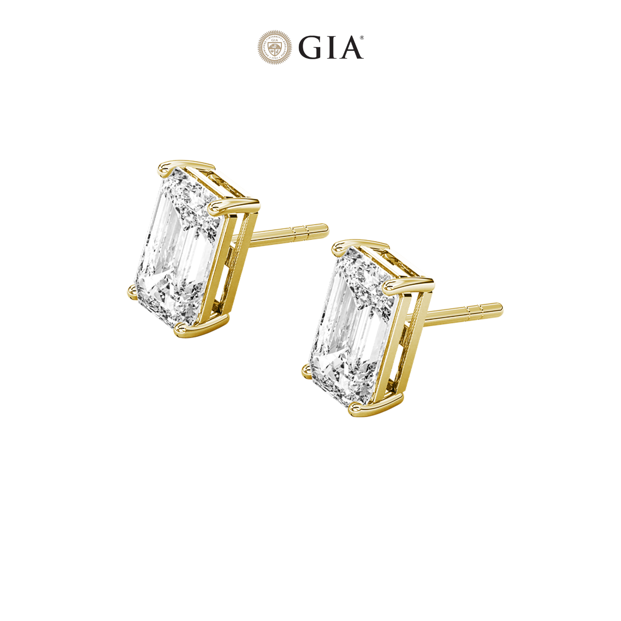 Elevate your elegance with these stunning Emerald -shaped GIA Certified natural diamond stud earrings. Crafted in 18K gold, these earrings feature a total diamond weight of 2 carats, offering a sustainable and radiant sparkle. The emerald diamonds are carefully set to enhance their brilliance, creating a sophisticated and timeless look. With secure push backings, these earrings provide a comfortable and effortless wear, perfect for both everyday chic and special occasions.