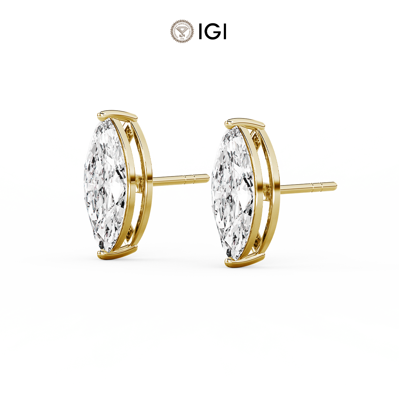 Elevate your elegance with these stunning Marquise-shaped IGI Certified lab-grown diamond stud earrings. Crafted in 18K gold, these earrings feature a total diamond weight of 2 carats, offering a sustainable and radiant sparkle. The Marquise diamonds are carefully set to enhance their brilliance, creating a sophisticated and timeless look. With secure push backings, these earrings provide a comfortable and effortless wear, perfect for both everyday chic and special occasions.