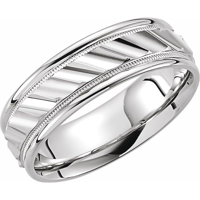 Nickel Plated Sterling Silver 6.75 mm Comfort-Fit Grooved Design Band Size 11