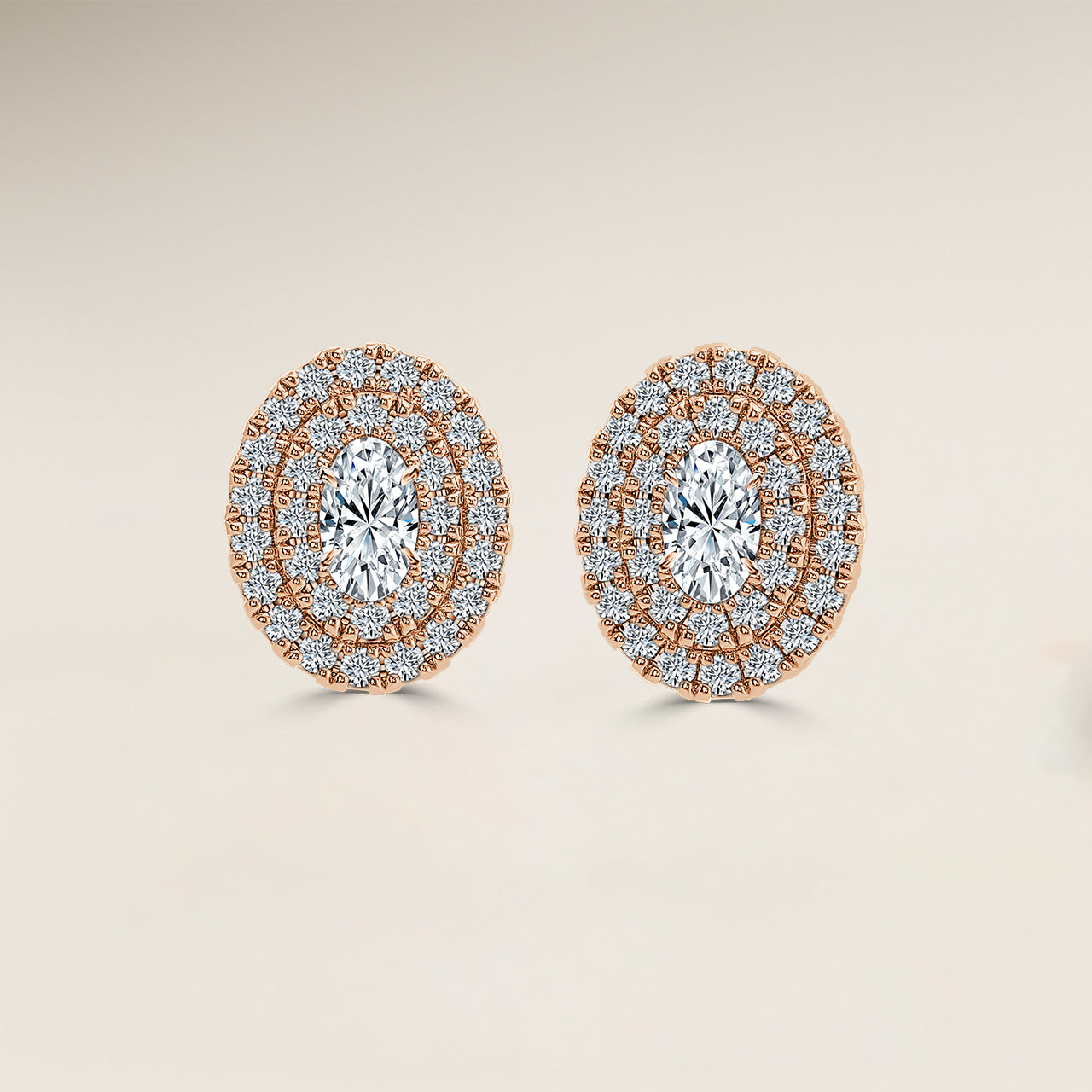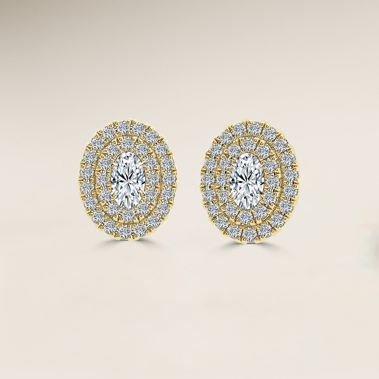 Oval Double Halo Earrings