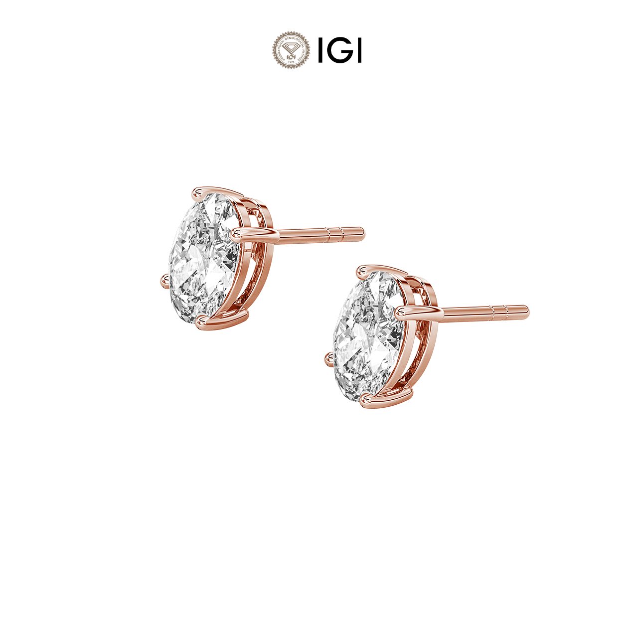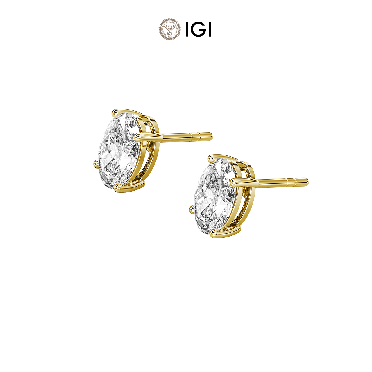 Elevate your elegance with these stunning oval-shaped IGI Certified lab-grown diamond stud earrings. Crafted in 18K gold, these earrings feature a total diamond weight of 1.00 carats, offering a sustainable and radiant sparkle. The oval diamonds are carefully set to enhance their brilliance, creating a sophisticated and timeless look. With secure push backings, these earrings provide a comfortable and effortless wear, perfect for both everyday chic and special occasions.