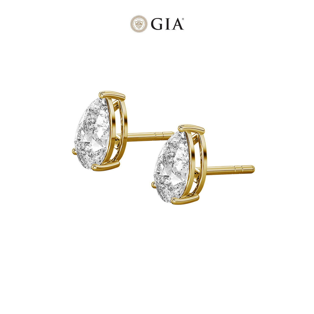 Elevate your elegance with these stunning Pear-shaped GIA Certified Natural diamond stud earrings. Crafted in 18K gold, these earrings feature a total diamond weight of 1.50 carats, offering a sustainable and radiant sparkle. The pear diamonds are carefully set to enhance their brilliance, creating a sophisticated and timeless look. With secure push backings, these earrings provide a comfortable and effortless wear, perfect for both everyday chic and special occasions.
