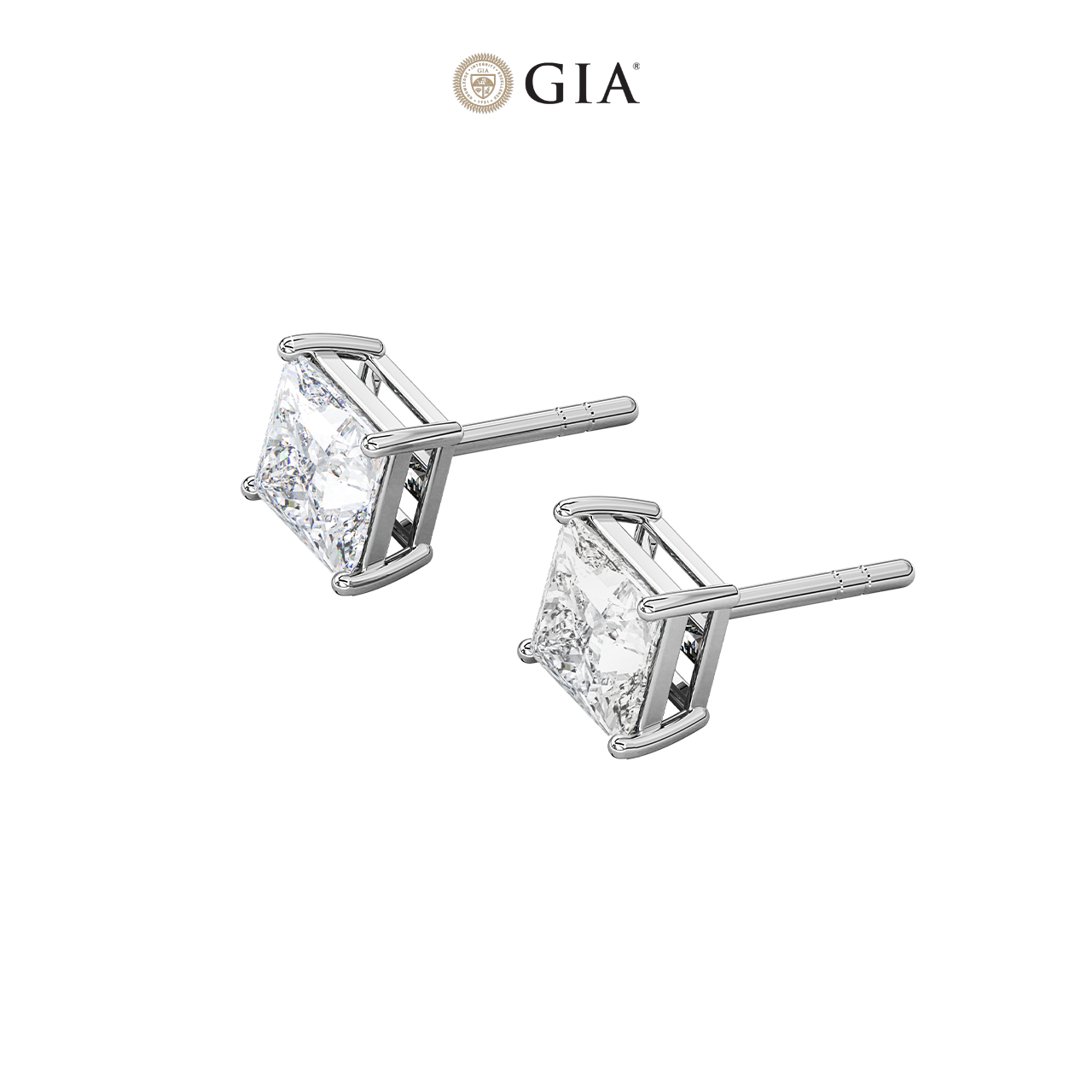 Elevate your elegance with these stunning Princess-shaped GIA Certified natural diamond stud earrings. Crafted in 18K gold, these earrings feature a total diamond weight of 2 carats, offering a sustainable and radiant sparkle. The Princess diamonds are carefully set to enhance their brilliance, creating a sophisticated and timeless look. With secure push backings, these earrings provide a comfortable and effortless wear, perfect for both everyday chic and special occasions.