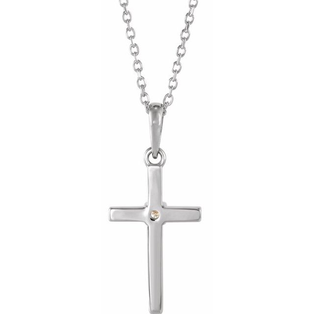 Sterling Silver .03 CT Natural Diamond Cross 16-18' Necklace