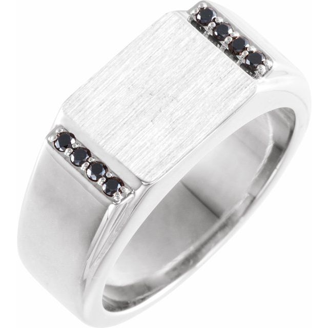Sterling Silver 1/10 CTW Natural Black Diamond Signet Ring