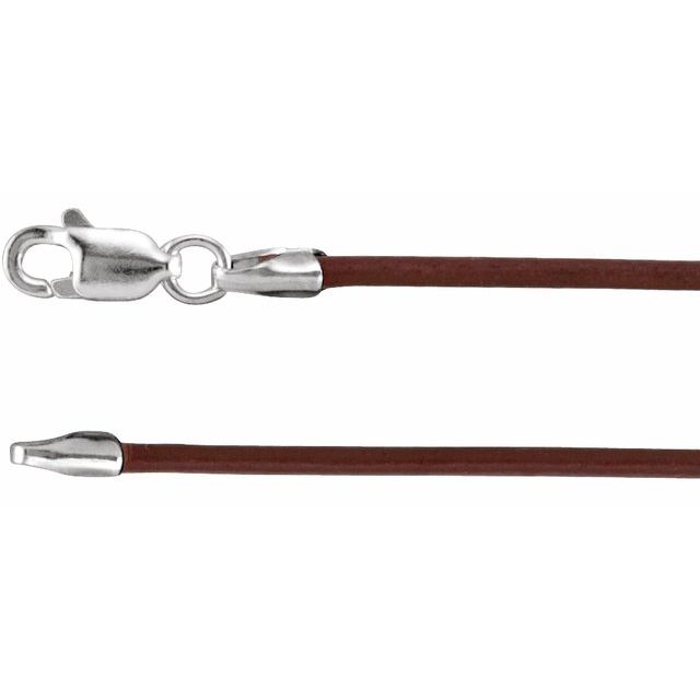 Sterling Silver 1.5 mm Brown Leather 16' Cord