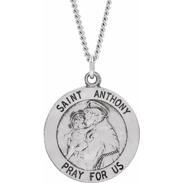 Sterling Silver 18 mm St. Anthony Medal 18' Necklace