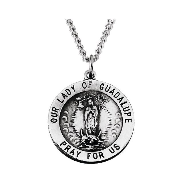 Sterling Silver 22 mm Round Our Lady of Guadalupe Medal 24' Necklace