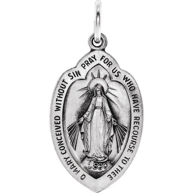 Sterling Silver 29x15 mm Oval Miraculous Medal Pendant